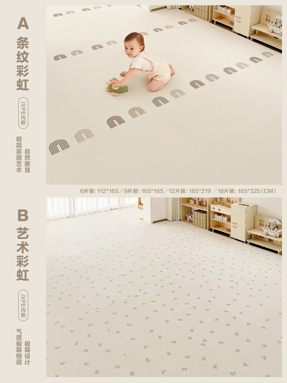 贝易拼接爬爬垫6片ixpe 6片装 条纹彩虹+艺术彩虹